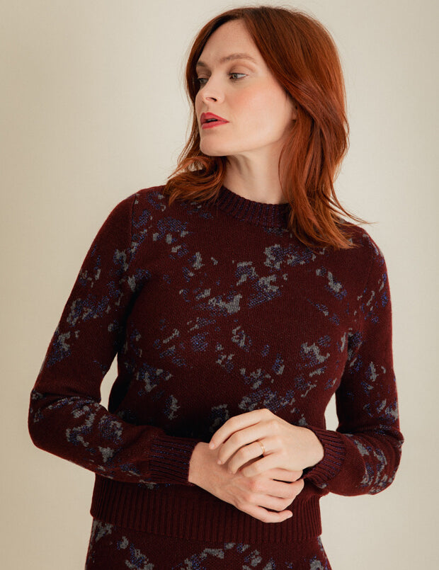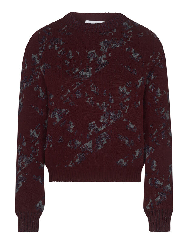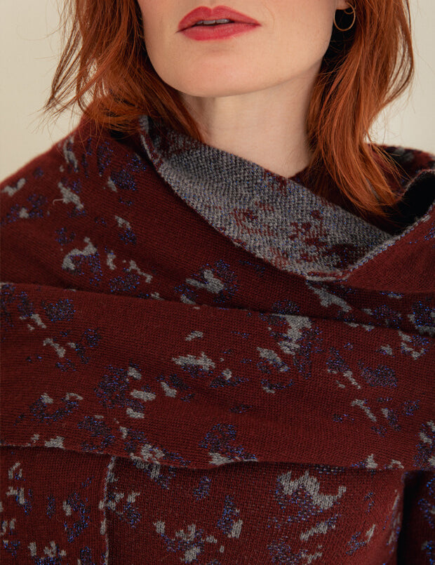 Lin Lambswool Jacquard Knitted Hood Burgundy
