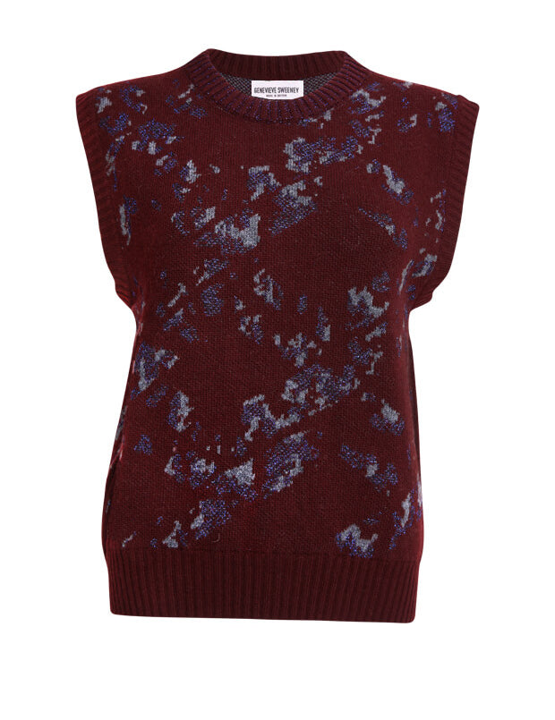 Lin Lambswool Jacquard Knitted Vest Burgundy