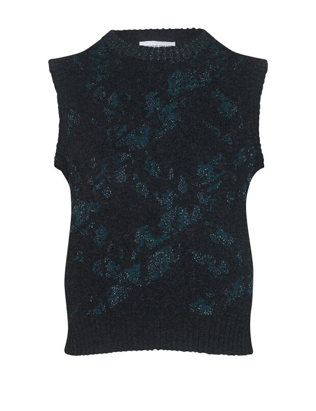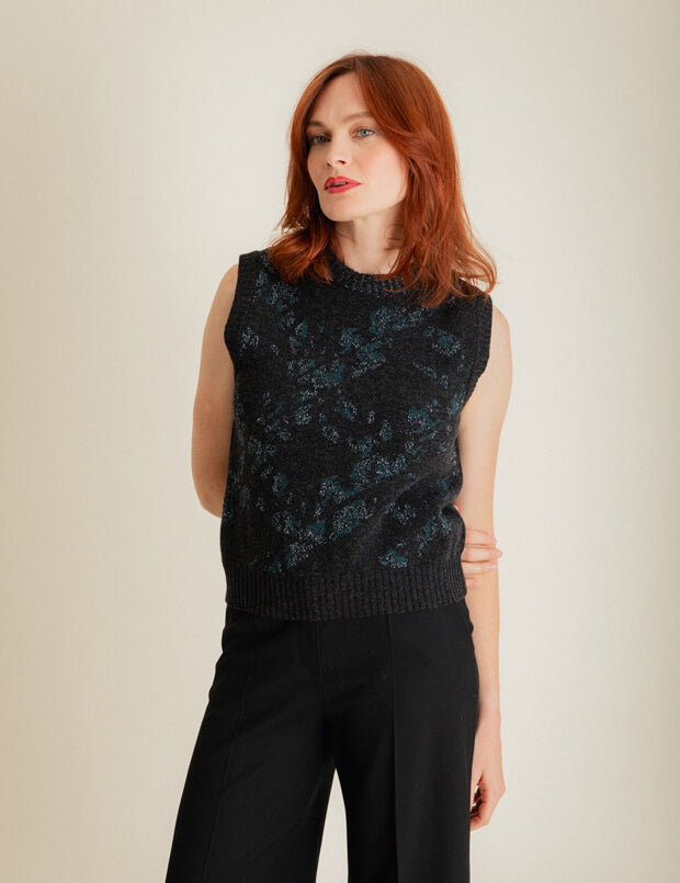 Lin Lambswool Jacquard Knitted Vest Charcoal