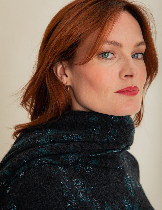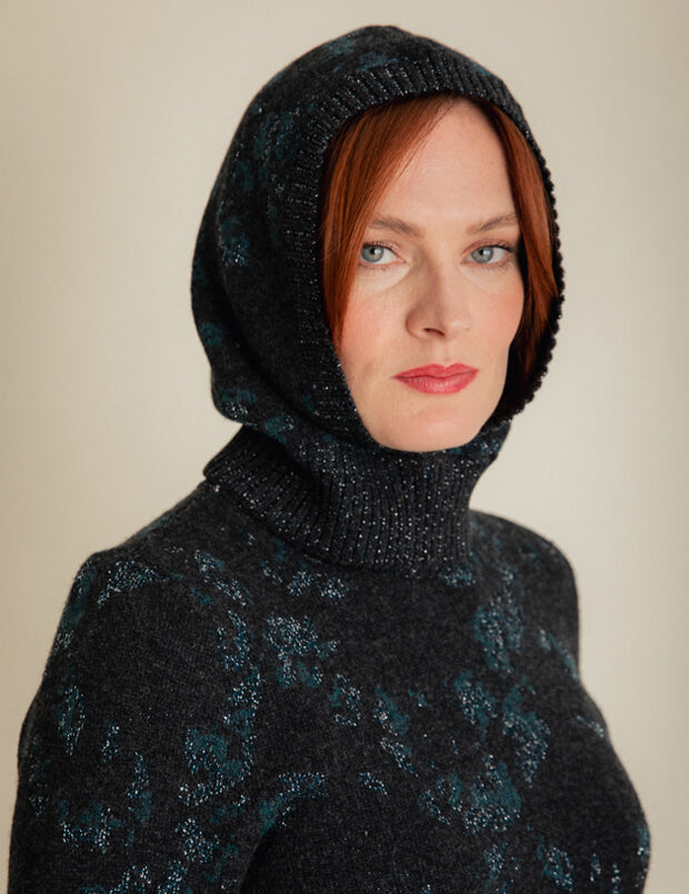 Lin Lambswool Jacquard Knitted Hood Charcoal