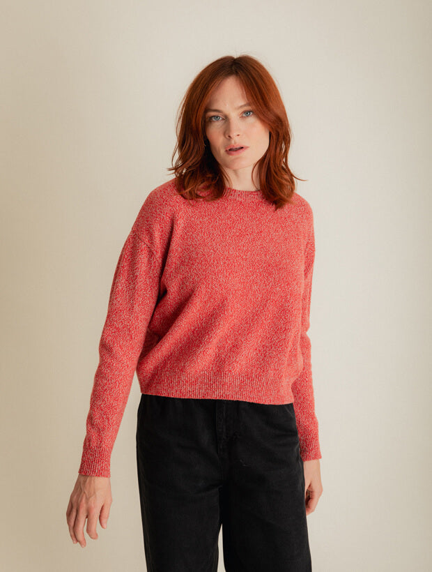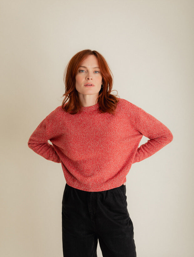 The Ash sweater is presented in a fresh <span style="font-weight: 400;">poppy red and natural melange</span> that evokes an uplifting mood. Thanks to the magic of its lambswool yarn, this highly versatile sweater will help to regulate body temperature, whatever the weather. Not only does it promise essential warmth against the cold, it also possesses a lightweight quality that’s equally suited to keeping cool during the summer months.