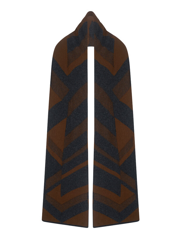 With its oversized silhouette and bold textural geometric pattern, this scarf is as versatile as it is striking. The blanket-like shape allows it to be styled in multiple ways to keep you warm and comfortable, while the jacquard knit reveals a tonal reverse — offering two looks in one.