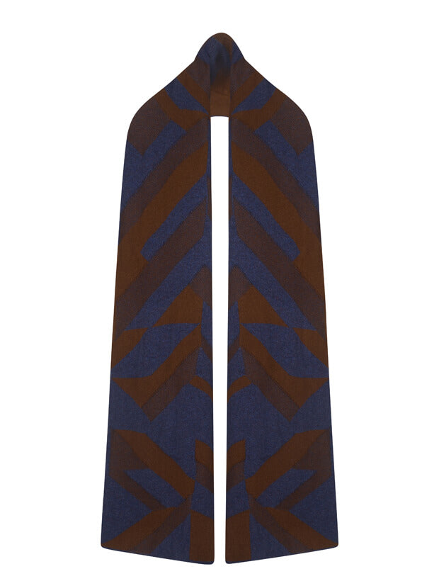 The oversized silhouette and bold textural geometric pattern make this scarf a versatile statement piece. Its generous blanket-like shape can be styled in multiple ways — draped over the shoulders, wrapped high against the cold, or layered with outerwear — while the jacquard knit offers a tonal reverse for two looks in one.