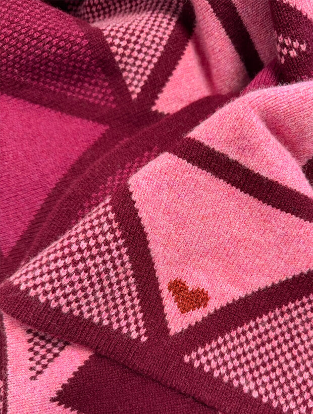 Geometric Lambswool Blanket Scarf Raspberry Pink