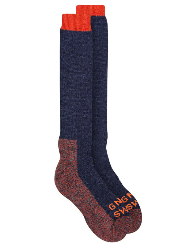 Introducing a new colourway to our much-loved Genevieve Sweeney merino wool long walking socks – deep navy blue with vibrant orange detailing. Expertly knitted in our GS signature marl using the softest merino wool blend, these luxury outdoor socks combine comfort, durability, and style.