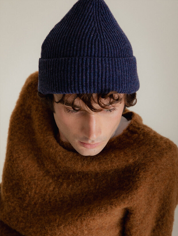 The exquisite hue of this hat is created by blending together a multi-tonal melange of Ink navy blue melange with hints of indigo and purple – a highly skilled process carried out by traditional machinery and overseen by a family-run mill with over 250 years of experience.