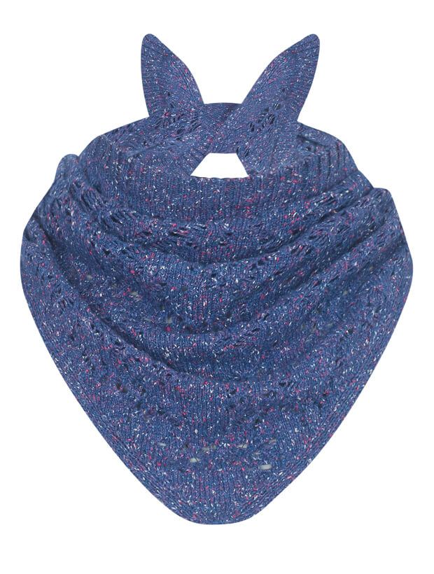 A beautifully lightweight lambswool and silk triangle lace scarf in a blue tweed, designed to bring refined texture and effortless style to your Spring Summer wardrobe.