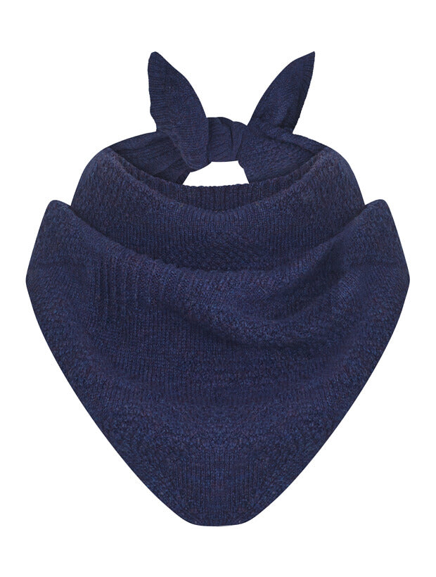 Make a statement with our textured Triangle Lambswool Scarf in a deep complex ink blue with hints of purple and navy. This is the first style that has been designed, developed, and knitted in-house by Genevieve in her studio in Hertfordshire, this striking scarf is a testament to modern British craftsmanship. The large triangle shape, combined with a distinctive texture of moss stitch, rib, and knit. Fully fashioned detailing at the sides ensures a refined, elegant silhouette, while the deep melange hue adds an elegant textural detail to your capsule wardrobe.