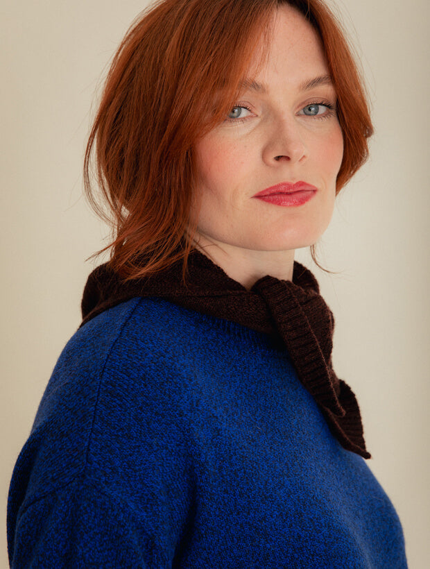 Knitted using repurposed, end-of-line production yarn to create zero waste.