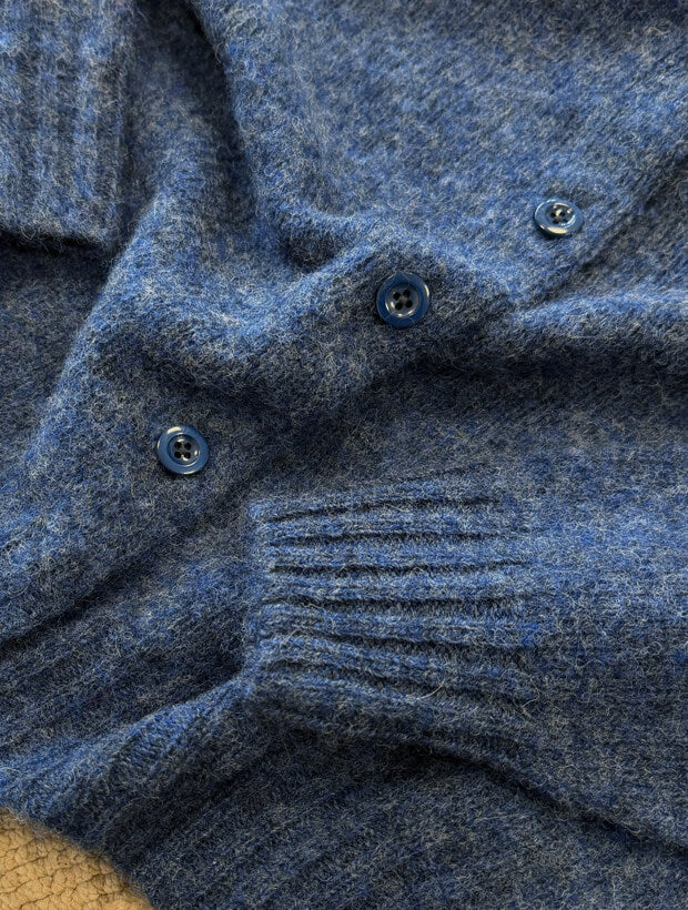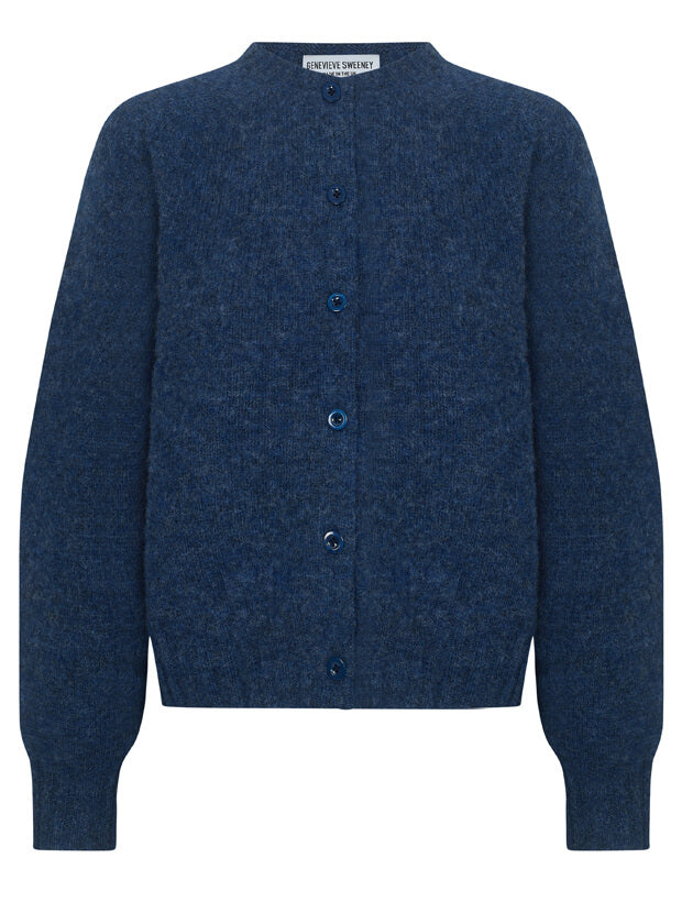 A modern classic, our Lenzie cardigan in a deep blue denim melange features a sumptuous brushed finish with a slightly boxy fit. Every detail is considered, including the custom dyed British-made buttons dyed in a deep blue tone. A versatile cardigan, you'll reach for time and time again.