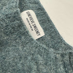 Genevieve creates the Leslie sweater's complex stormy green-blue hue through a carefully balanced melange with hints of grey.