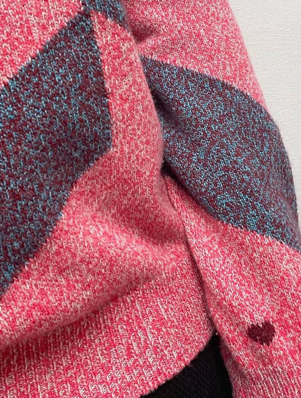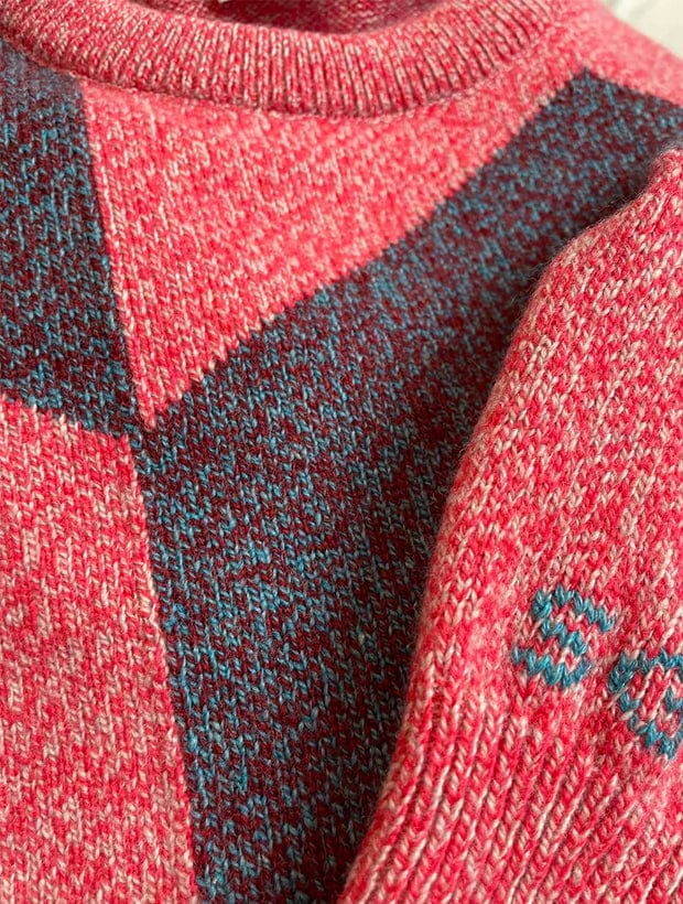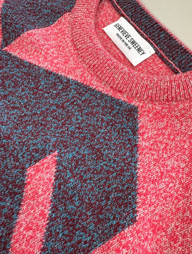 The ultimate statement sweater, Leyden combines a geometric pattern with an effortless, relaxed silhouette. Its unique pink and blue marls showcase a contemporary twist on the traditional intarsia knitting technique, creating a bold pattern that will instantly elevate any outfit.
