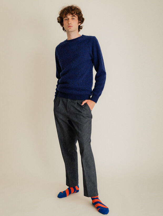 Genevieve creates the Lunan’s neutral hue through a carefully balanced navy melange with hints of ink and grey.