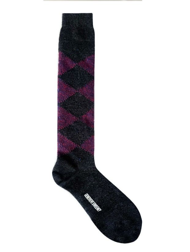 Saryl Merino Argyle Knee High Sock Charcoal