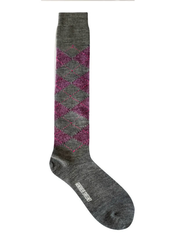 For those who feel the cold and need ultimate warmth this season, meet Saryl, a twist on an iconic classic. Let the Saryl argyle knee-high socks flash from underneath a pair of cropped leg trousers, providing a welcome dose of colourful hues and cosiness on dreary rainy days. A stylish fusion of complex diamond marls knitted in unique and dramatic hues, twinned with an eye-catching, vibrant racker stitch.