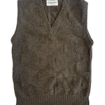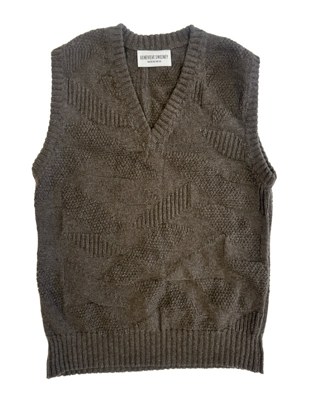 Genevieve crafts the Soar v-neck knitted vest in taupe brown with hints of grey melange.