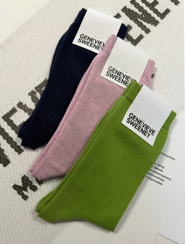 A fresh trio of colourful socks makes an excellent gift for birthdays and special occasions. This set of three of our best-selling Sotto socks in soft organic cotton is presented in a stylish GS gift box, ready for gifting or treating yourself with a colourful seasonal update. This thoughtful, unique gift set includes one pair of plain navy blue, pistachio green and light pink melange.