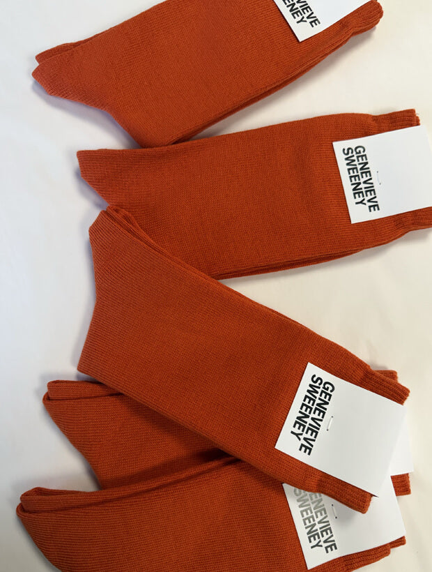 Sotto is a modern everyday sock in a rich deep orange — a confident, warming hue designed to elevate refined style. Knitted in premium Italian organic cotton, it offers exceptional softness and breathability in the perfect midweight knit — lightweight, yet never too fine. Expertly finished with lightly plated Lycra for lasting shape retention and all-day comfort.