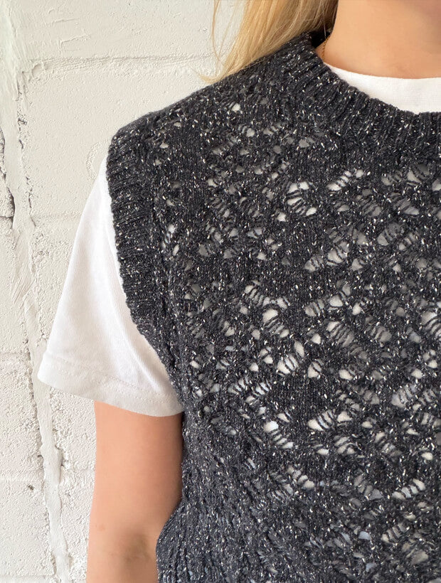 Meet Ver, our lightweight lace-knitted vest in a tonal black lambswool-and-silk melange. Airy, breathable and effortlessly refined, the perfect layer for spring and summer.