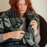 Geometric Lambswool Blanket Scarf Green